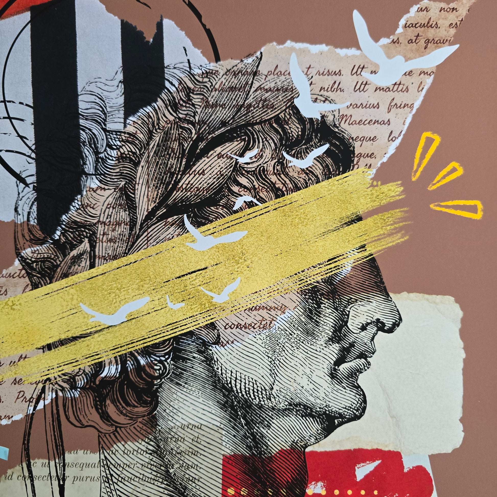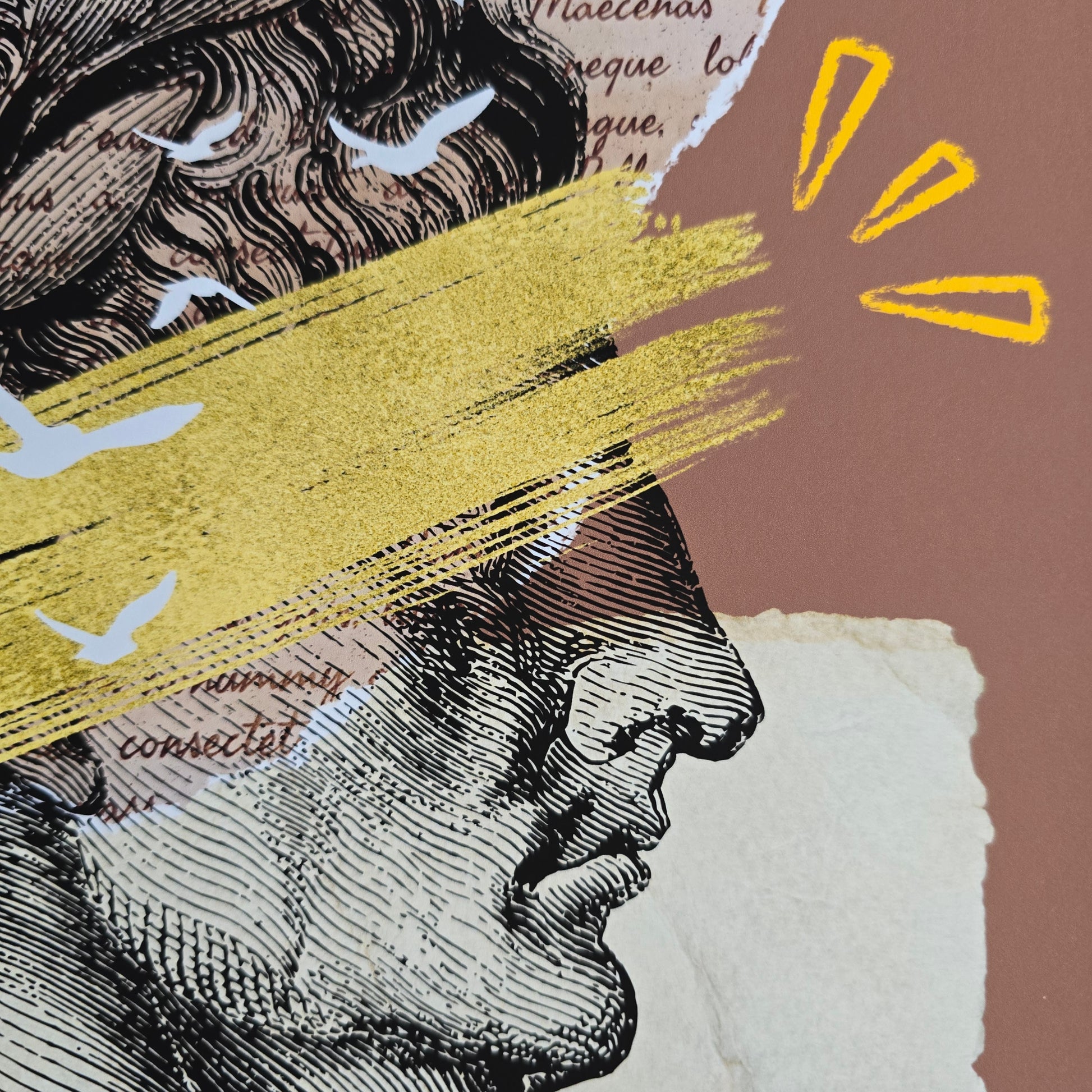 Plakat Approved predstavlja reinterpretacijo klasičnega moškega portreta – ujetega med zgodovino in sodobnostjo, med redom in kaosom. Skozi kolažno plastenje, ilustrativne poudarke in ročno teksturirane poteze nastaja lik, ki ne obsoja, temveč sprejema.