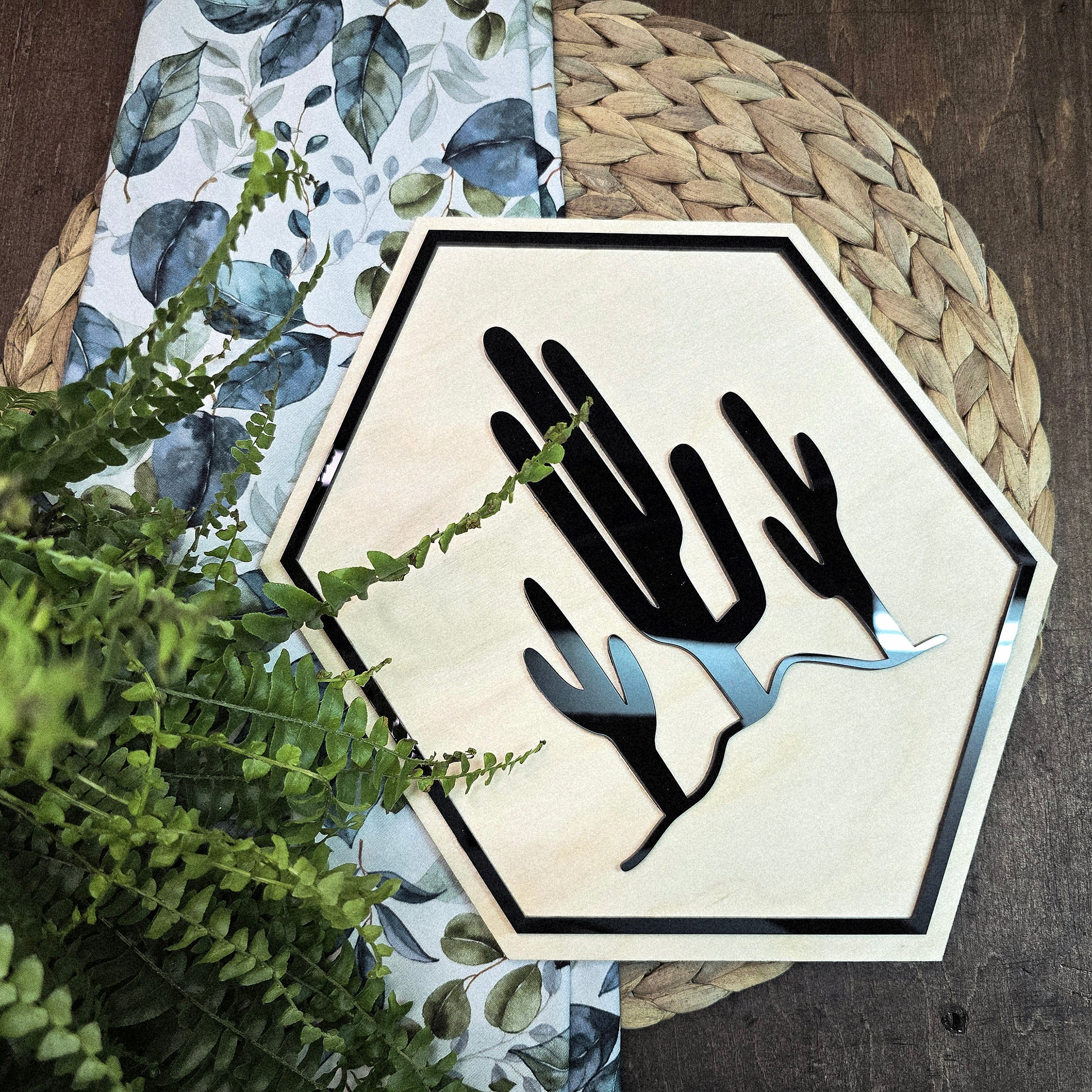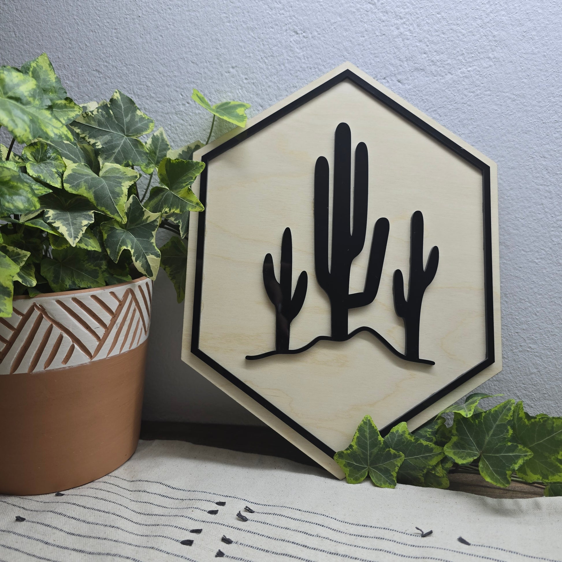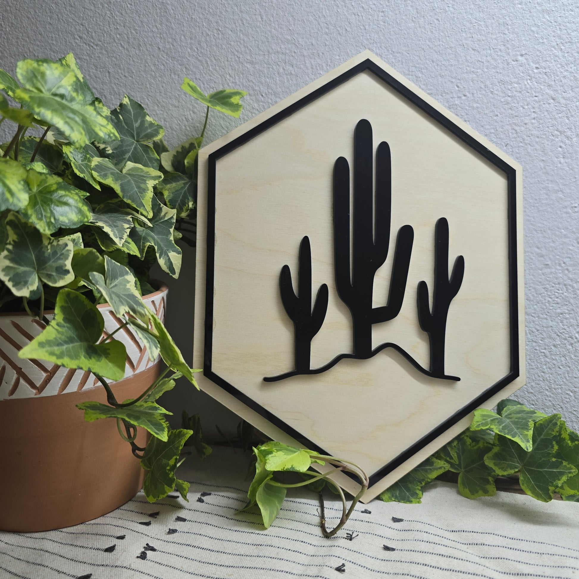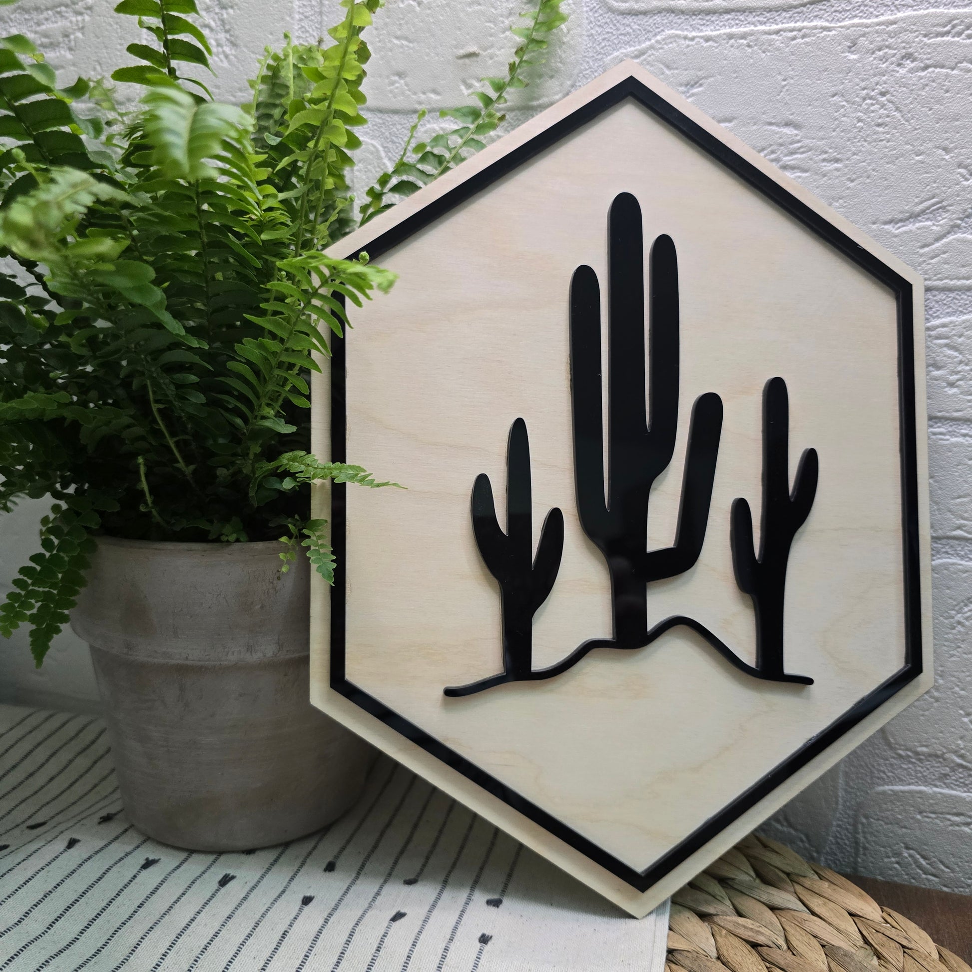 Lesena dekoracija – Kaktusi v minimalističnem duhu