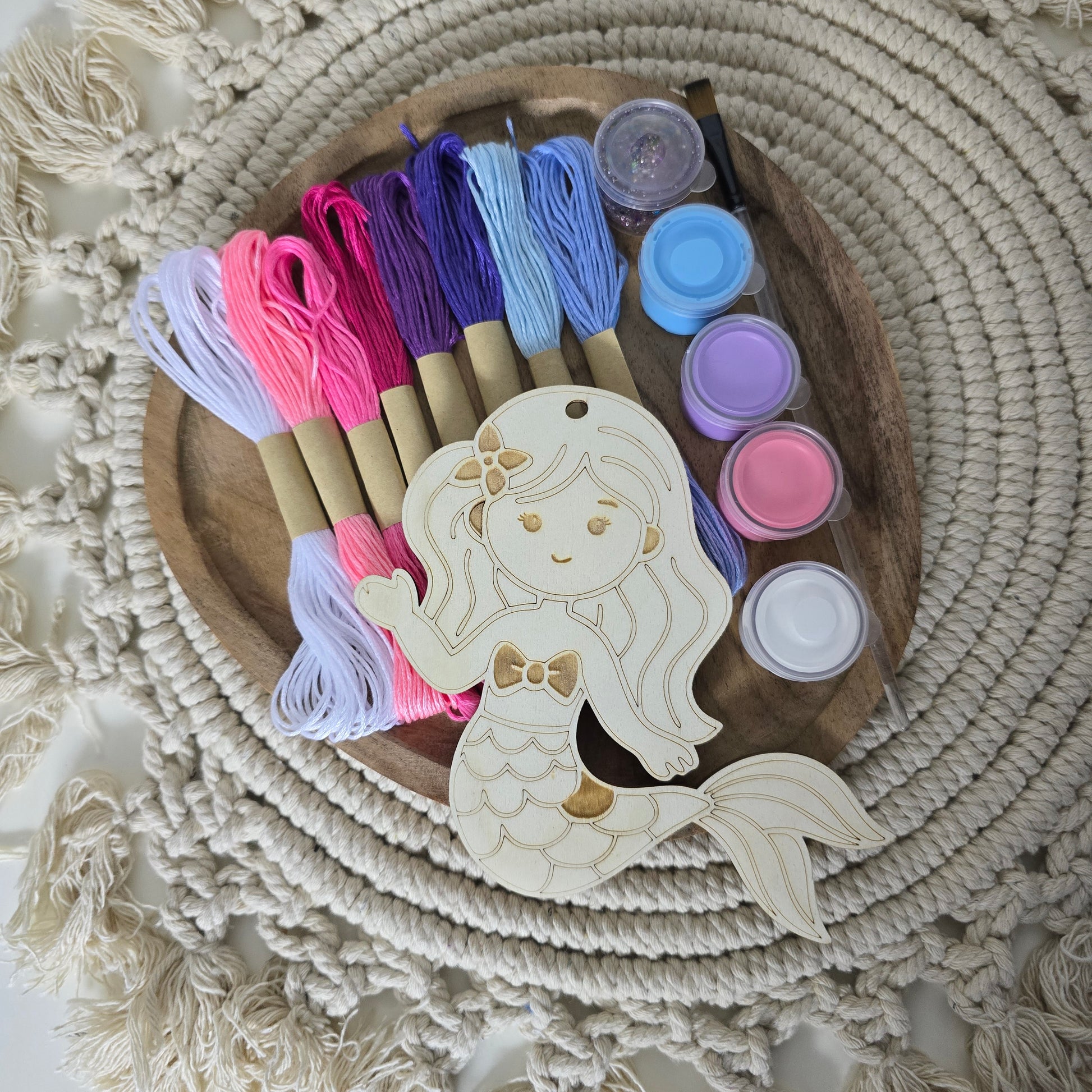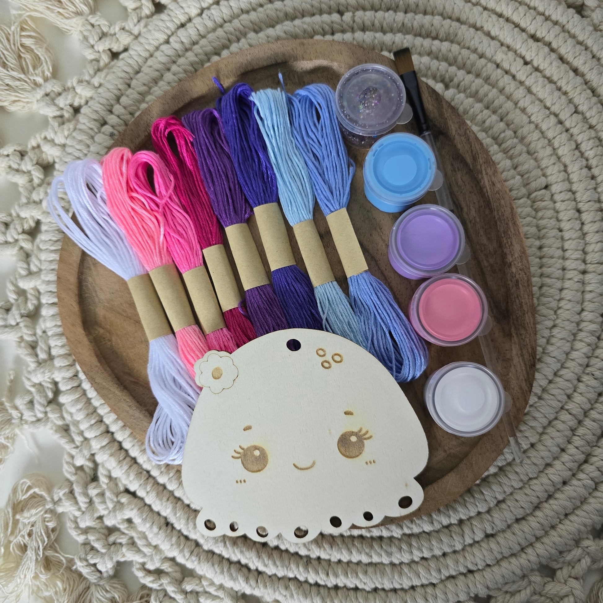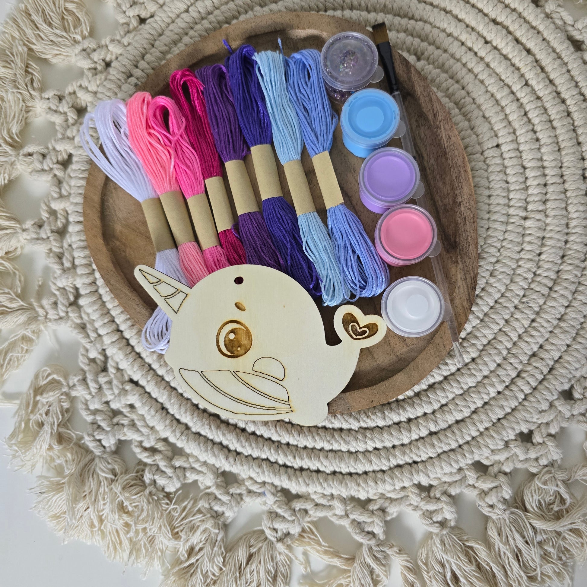 V paketu prejmete vse, kar potrebujete za okraševanje šestih prikupnih lesenih figuric – morske deklice, morskega samoroga (narvala), raže, morske zvezde, meduze in samoroga.