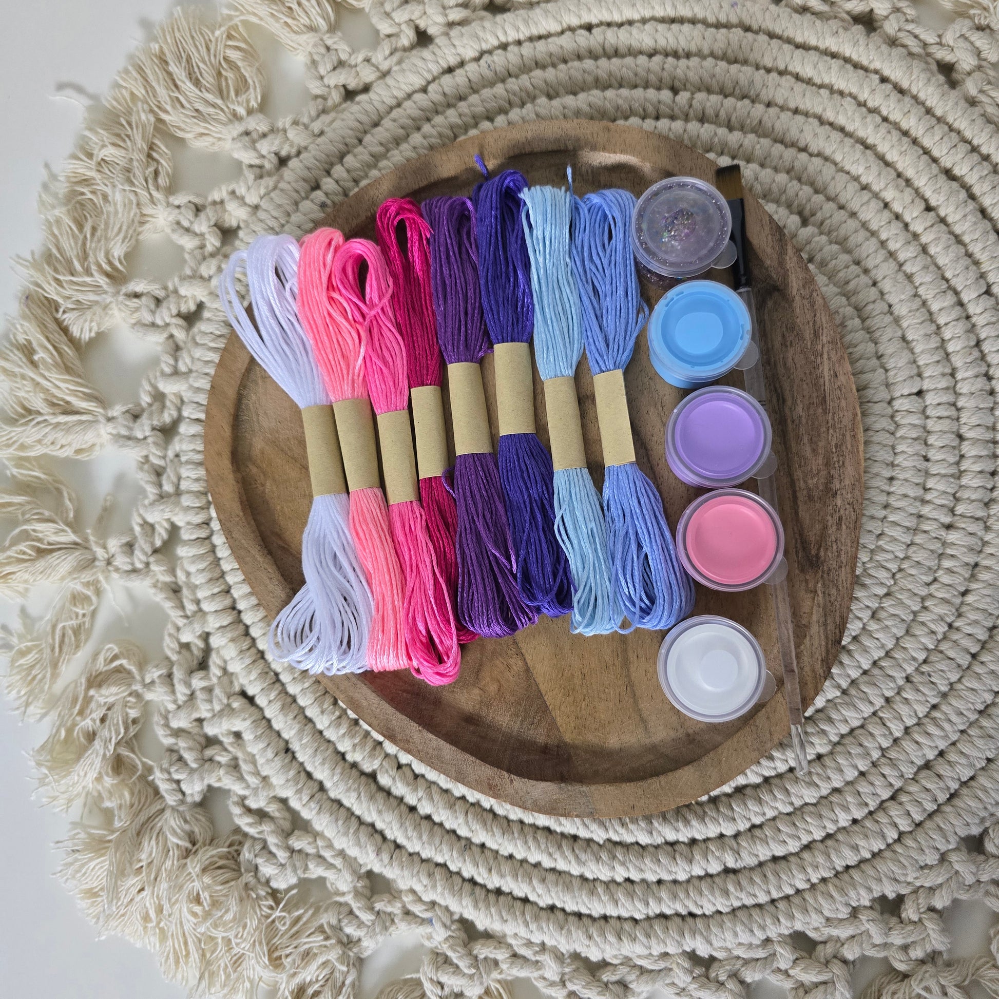 8 odtenkov bombažne prejice (roza, vijolična, modra in bela) za vezenje ali dekoracijo.