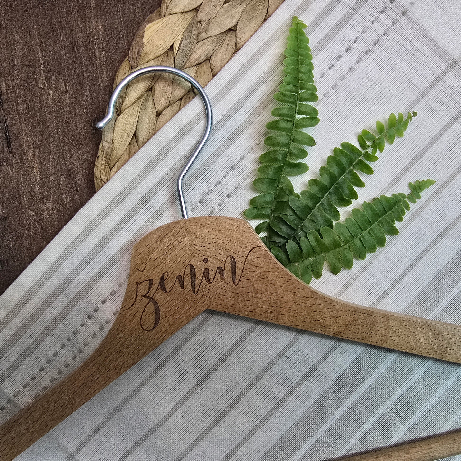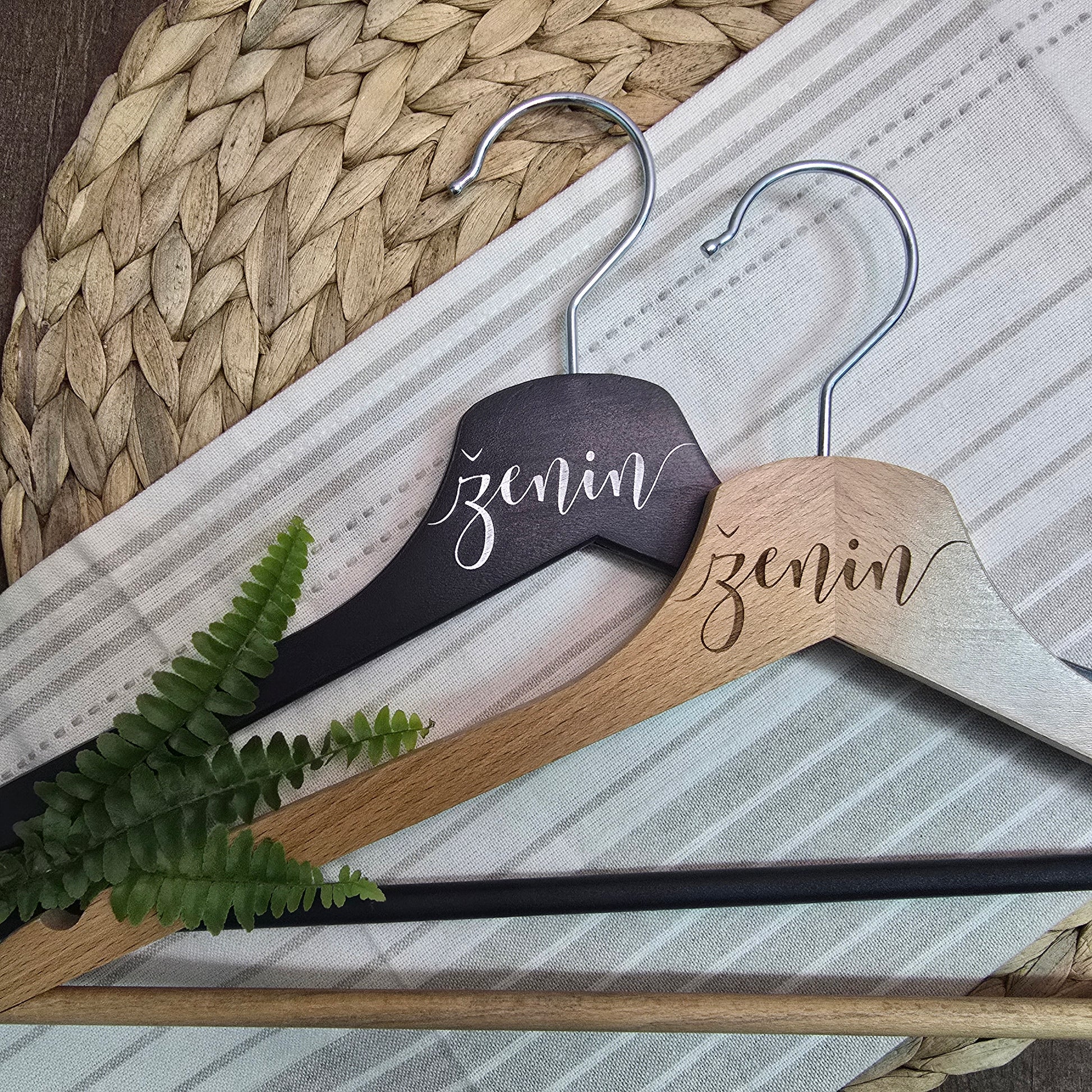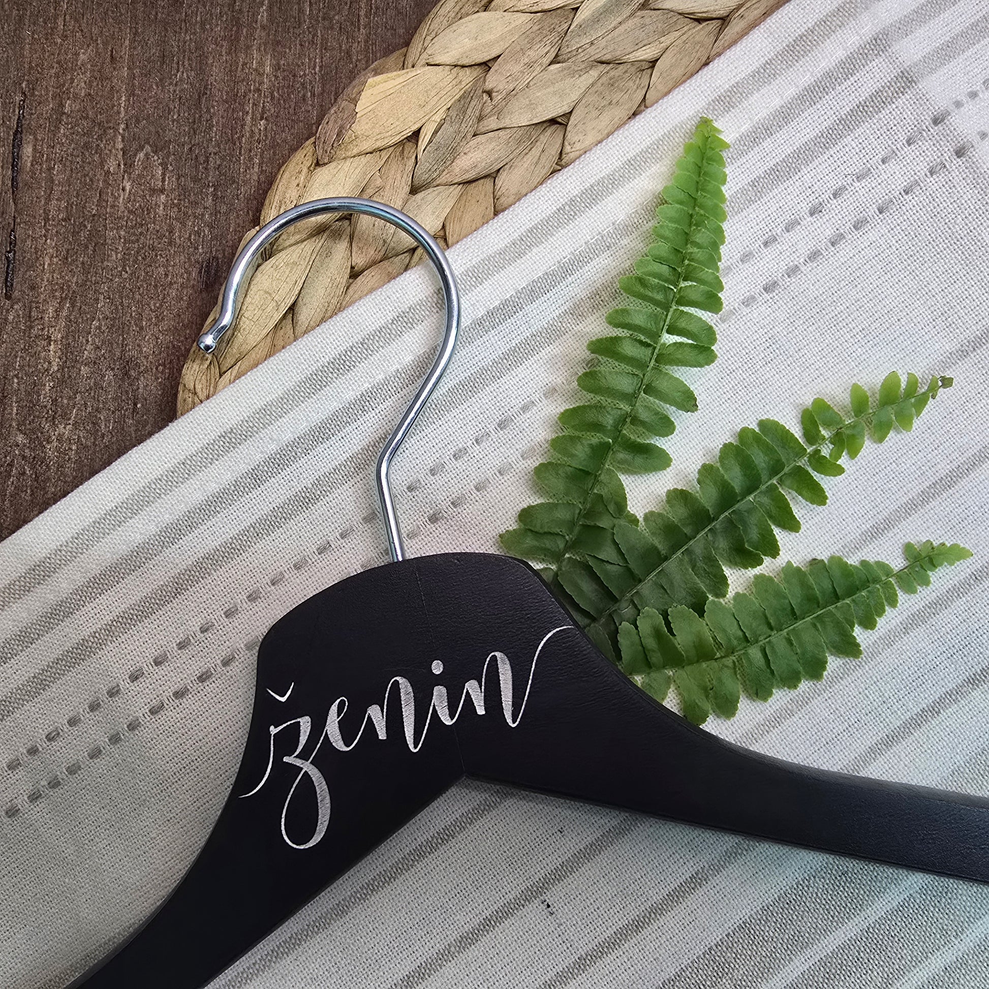 Lesen obešalnik z gravuro "ženin", popoln detajl za ženinovo poročno obleko.